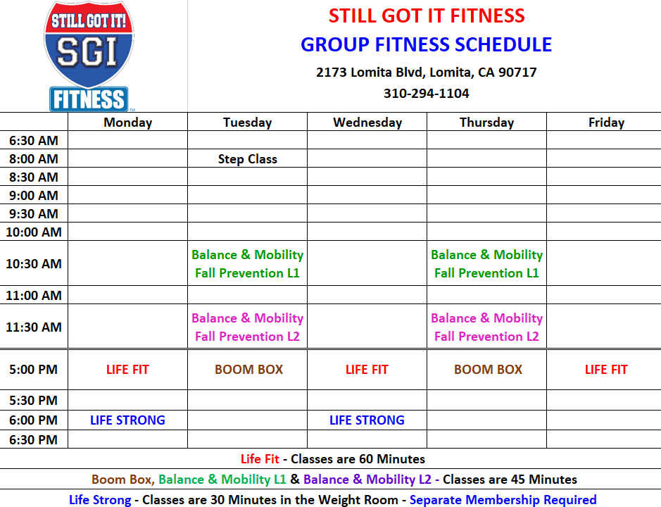 - Programs tailored to fit your needs. All our classes are geared to help actively aging adults.